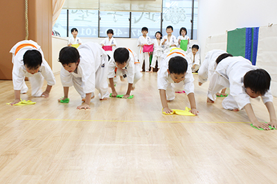 この体操教室では「楽しく元気に」をモットーに自分の体を自由自在に操れる楽しさを教えます。様々な競技にも応用できるプログラムです。